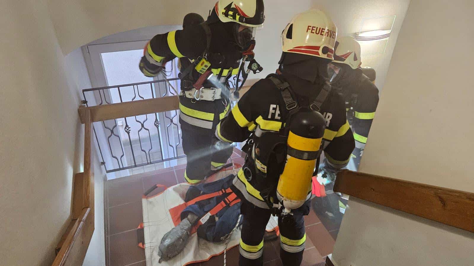 Die Aufgabe der einzelnen Atemschutztrupps bestand darin, den Brand im Heizraum mittels HD-Rohr zu löschen und dabei den richtigen Zugang (Türöffnung) zum Brandraum zu beüben. Ebenso waren im Heizraum verschiedene Gefahrengutkanister gelagert, welche lokalisiert und die Kennzeichnungen über Funk nach außen gegeben werden mussten. Im zweiten Obergeschoss mussten zudem vermisste Personen mittels schwerem Atemschutz und der Wärmebildkamera gefunden und gerettet werden.