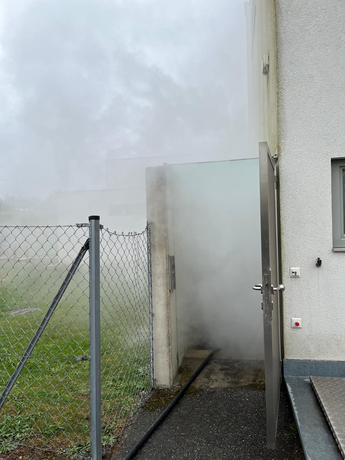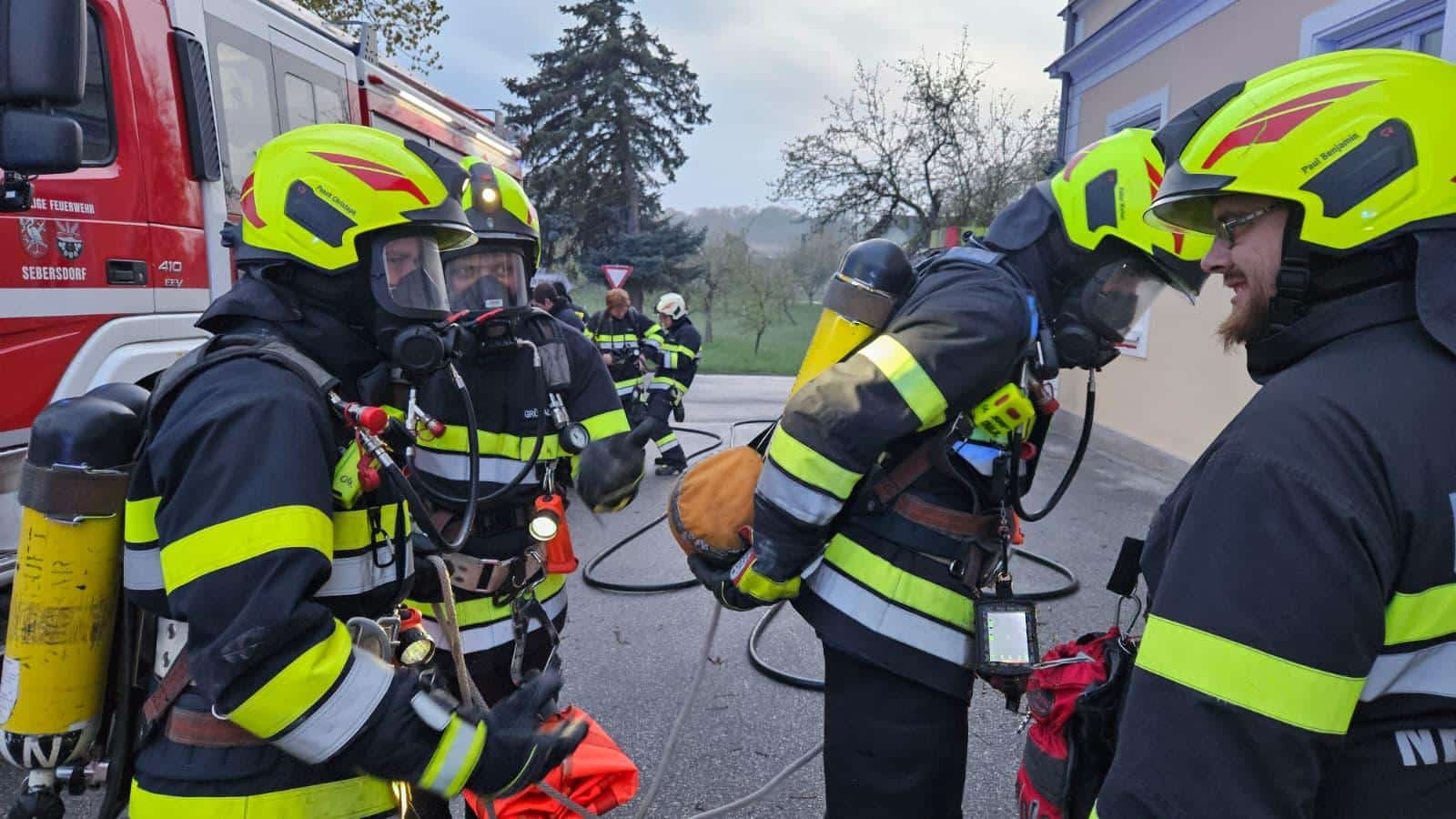 Nach der Übung wurden alle beteiligten Personen zur Verpflegung ins Rüsthaus Sebersdorf eingeladen! Dort stand auch das Atemschutzfahrzeug aus Weiz zur Verfügung, um die Atemschutzflaschen wieder befüllen zu können.