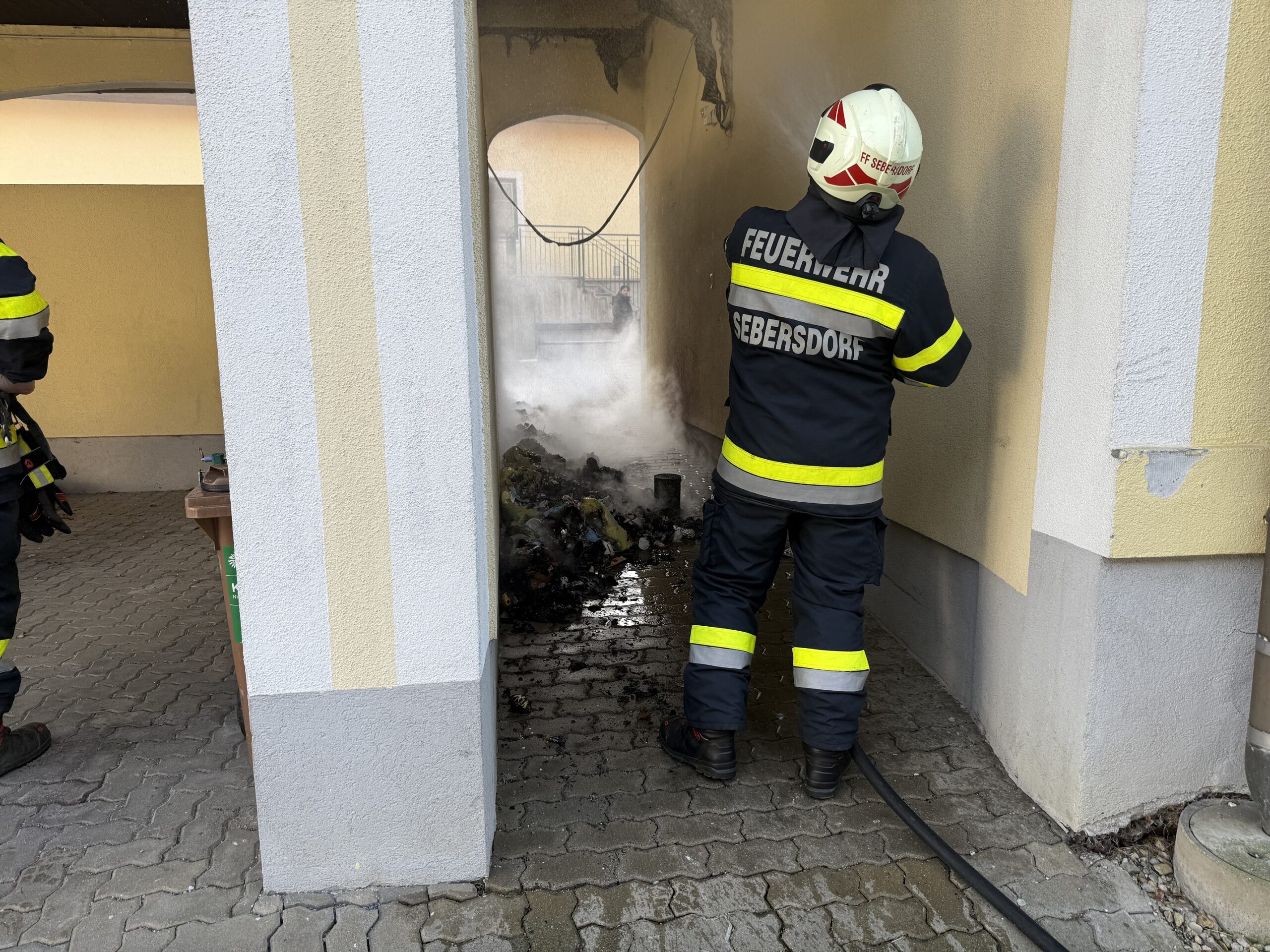 Am Donnerstag, dem 01.01.2026, wurde die Feuerwehr Sebersdorf um 12:41 Uhr per Sirenen Alarm zu einem Brand in einem Müllraum in Neustift bei Sebersdorf gerufen. Aufgrund des Alarmstichwortes wurde die Feuerwehr Ebersdorf zur Unterstützung mitalarmiert.