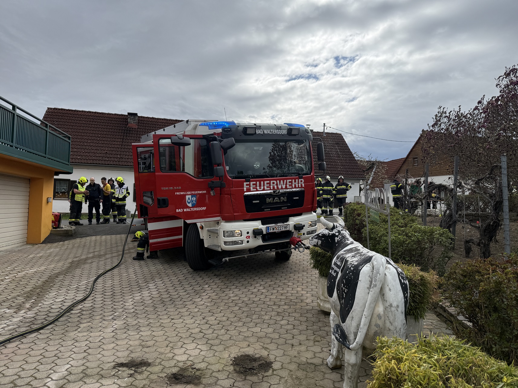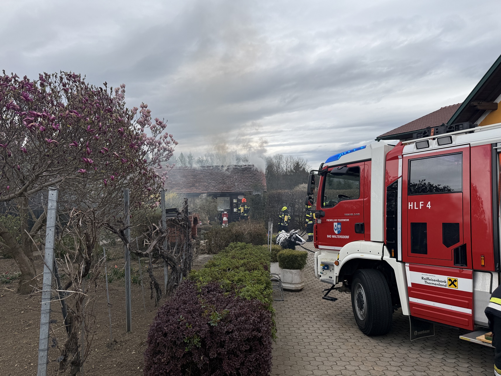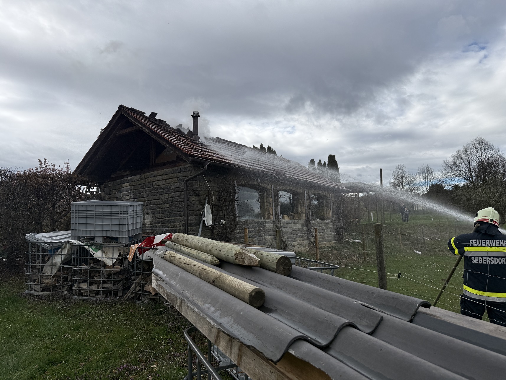 Die Feuerwehr Bad Waltersdorf löschte den Brand mittels schwerem Atemschutz und HD-Rohr von innen und außen. Die Feuerwehr Sebersdorf löschte den Brand mittels HD-Rohr von der anderen Seite und stellte gleichzeitig eines Atemschutzreservetrupp.