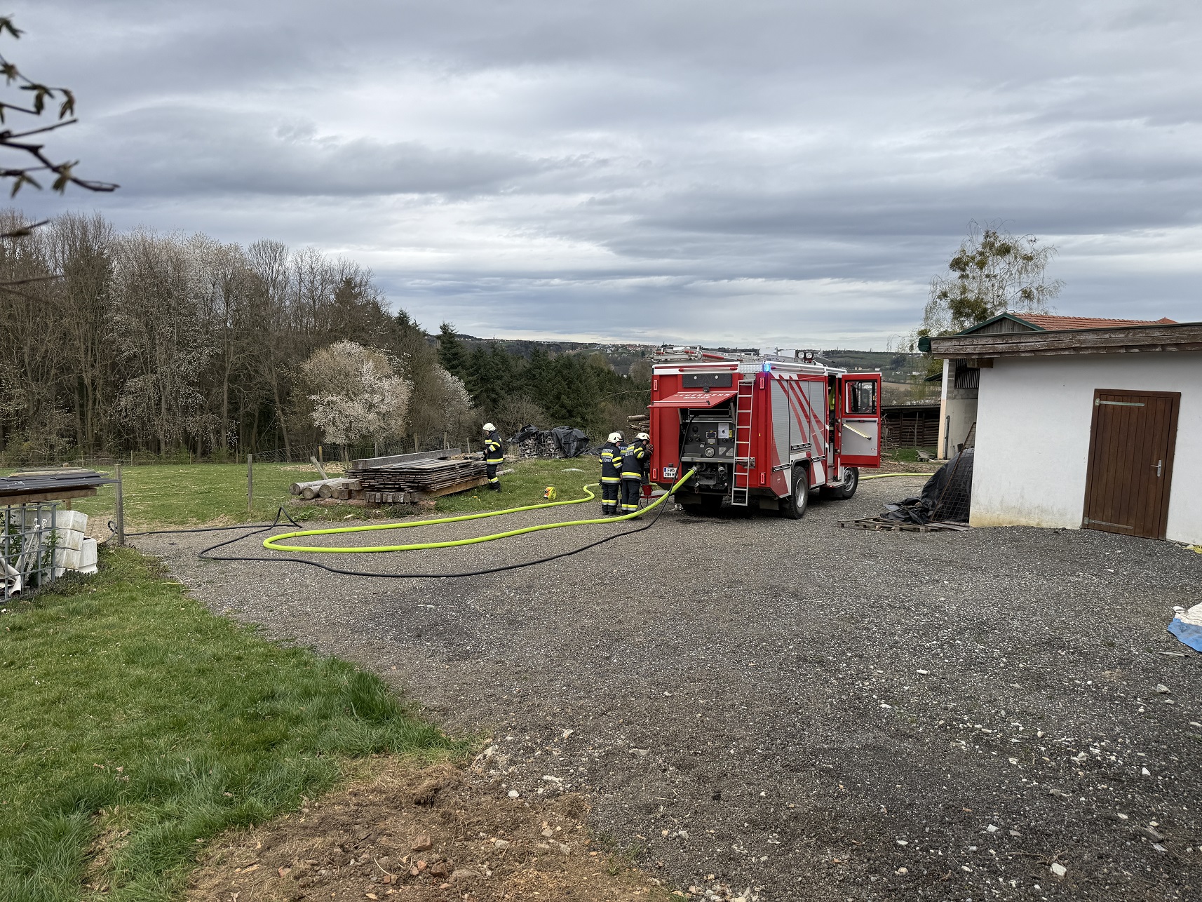 Am Samstag, dem 04.04.2026, wurde die Feuerwehr Sebersdorf um 14:48 Uhr per Sirenen Alarm zur Unterstützung der Feuerwehr Bad Waltersdorf bei einem Dachstuhlbrand in Waltersdorfberg gerufen.