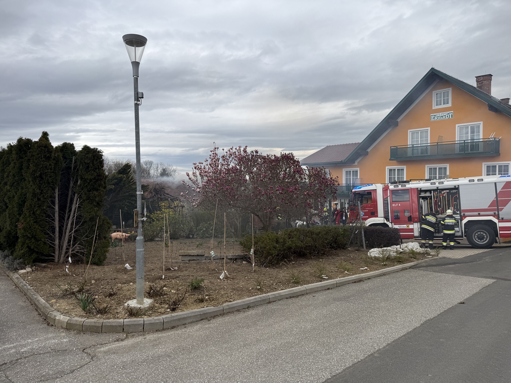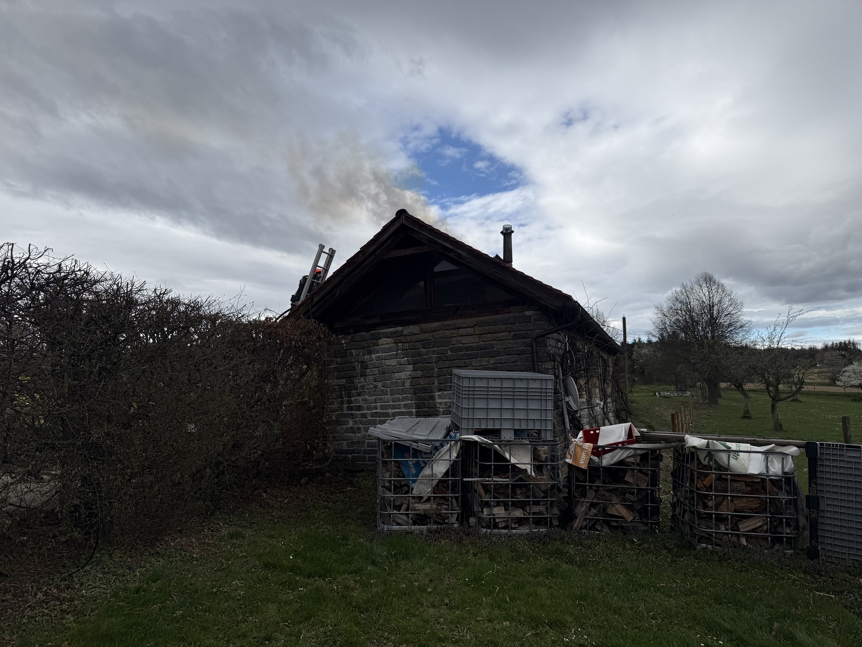 Aus bisher unbekannter Ursache kam es bei einem Nebengebäude zu einem Brand beim Dachstuhl. Der Besitzer konnte den Brand noch vor dem Eintreffen der Feuerwehr mit einem Handfeuerlöscher etwas eindämmen.