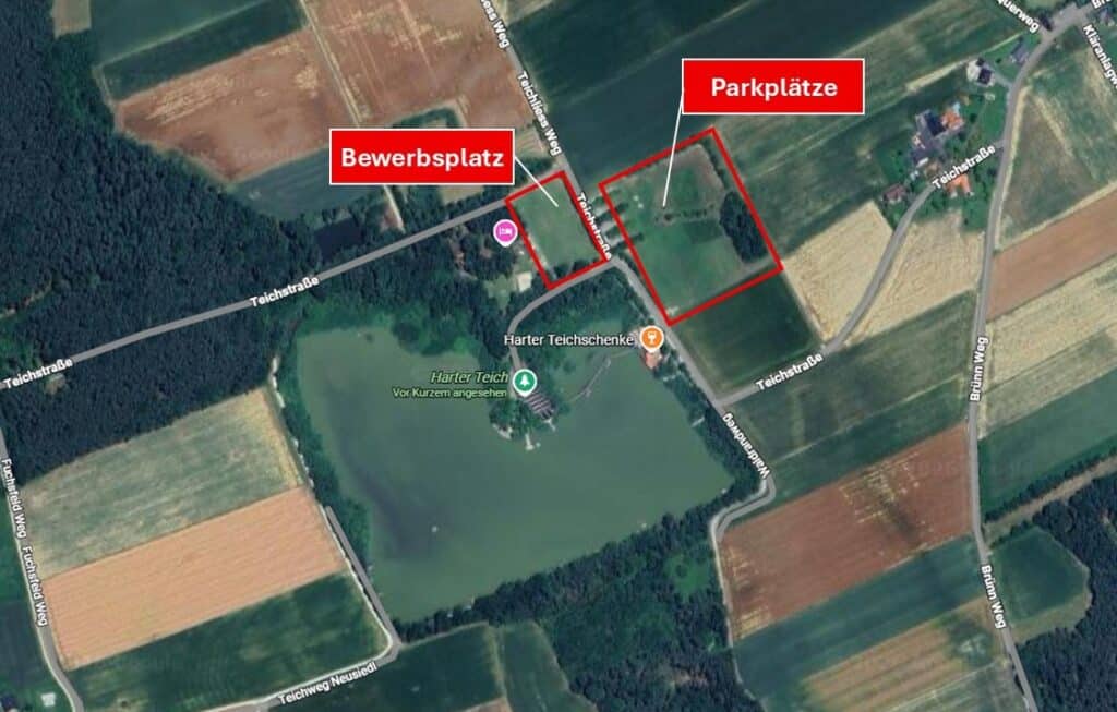 Hier findet Ihr die Skizze wo sich die Parkplätze und wo sich der Bewerbsplatz befindet: