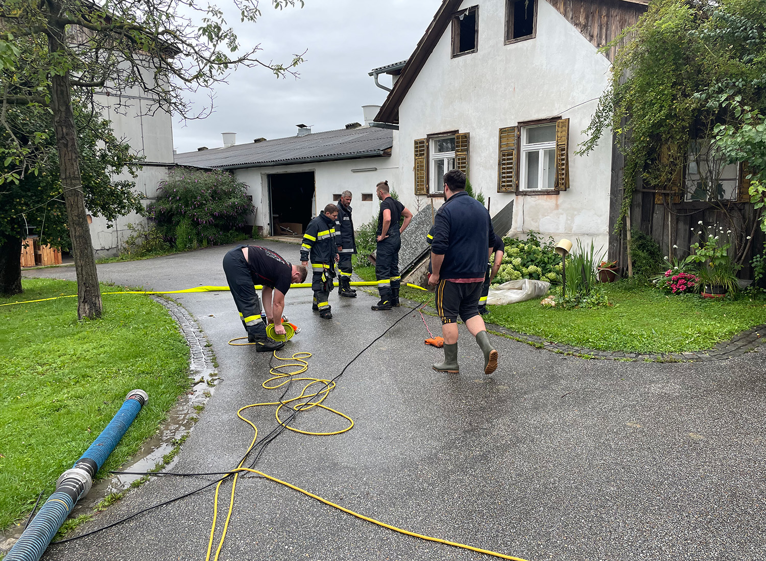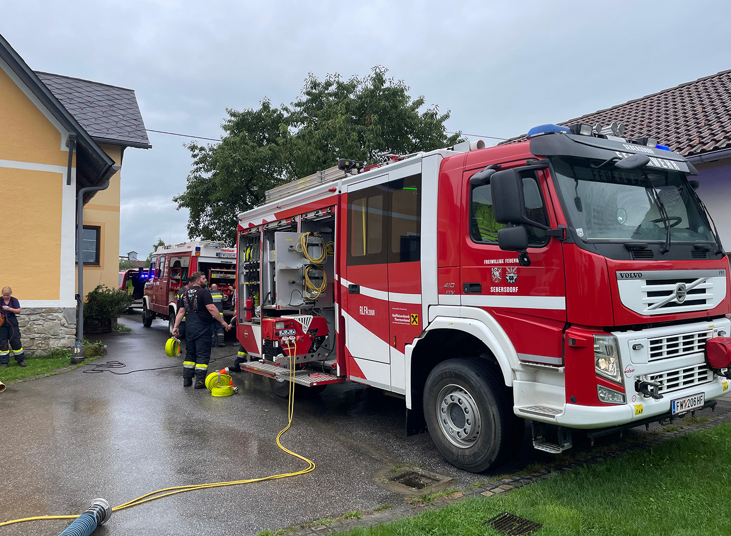 Die Feuerwehr Sebersdorf pumpte den Mostkeller mit der TS vom LF-A aus, der Keller des Wohnhauses wurde mit zwei Tauchpumpen ausgepumpt.