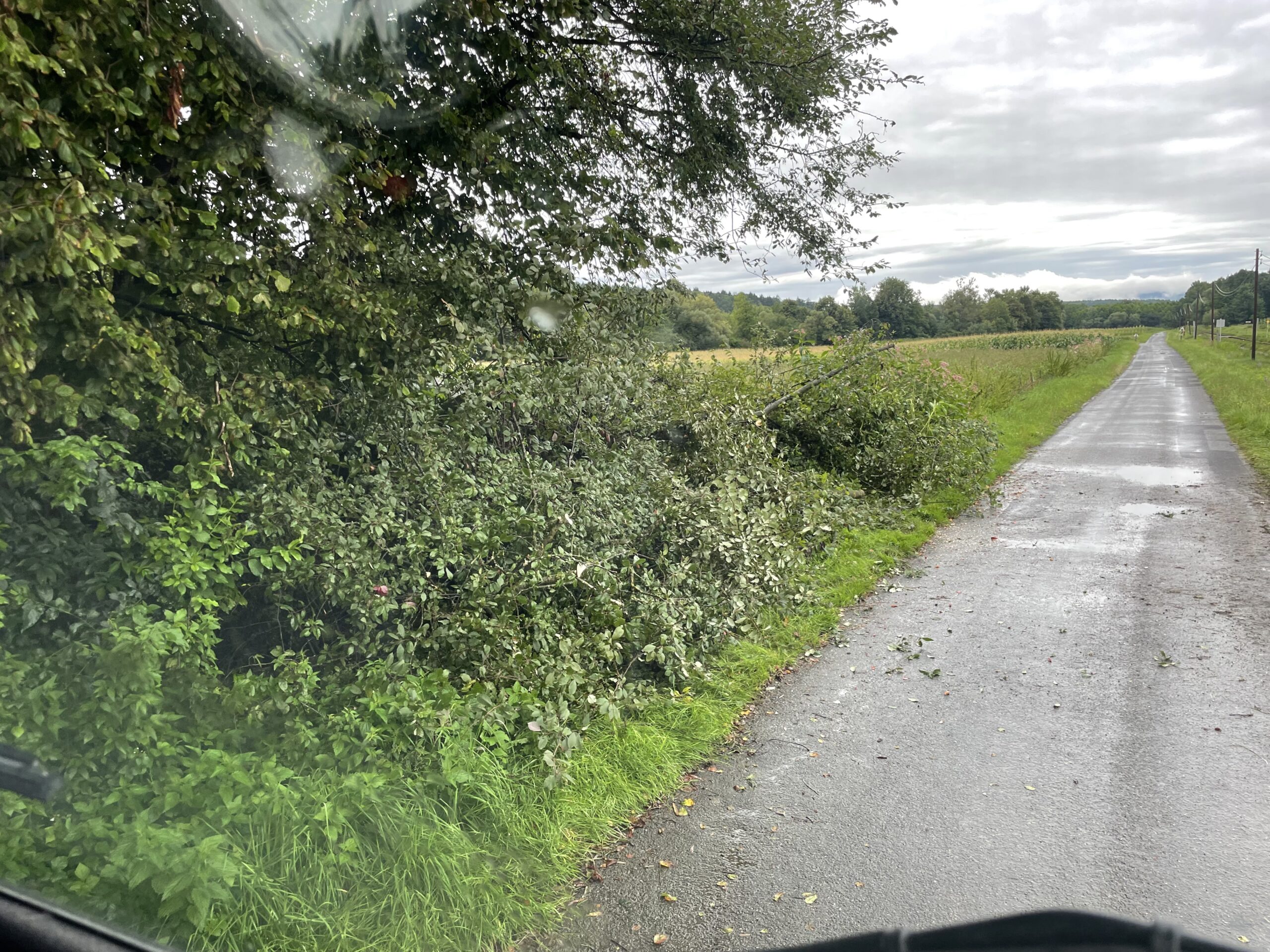 Aufgrund des Starkregens vom Vortag und am Samstag wurden ein Keller eines Wohnhauses mit knapp 20cm sowie ein Mostkeller mit knapp 1,5m mit Wasser überflutet.